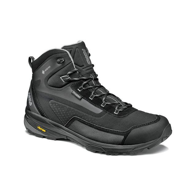 Lightweight model perfect for hiking and urban walks in snowy and icy conditions. The upper, made of water-resisatnt suede and polyester, offers lightness, protection, comfort and performance. The Gore-Tex Insulated Comfort Footwear lining guarantees the maximum insulation, waterproofness and breathability. The midsole is engineered with a mono density eva which guarantees support, comfort and cushioning while the Asolo/Vibram Crystal AG outsole presents a self-cleaning design and plus it uses the ArcticGrip Compound that guarantees extreme grip on icy and snowy terrains. To complete the model a toe rubber cap for additional front protection and the webbing lacing system for a fast and precise lace up.