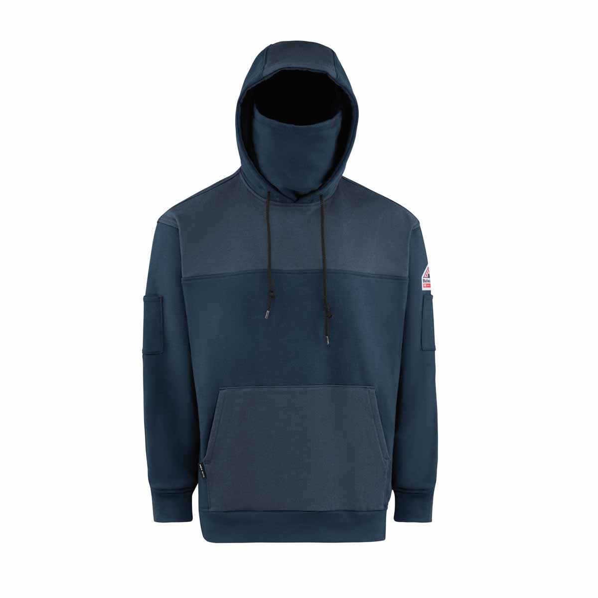 Now here’s a hoodie that helps you storm through the workday shielded from the elements – with everything in working order. Featuring HoodShield™ integrated face covering to shield your face from the wind and cold. A durable water repellent finish to keep you dry. Reinforced forearms that add durability where you need it most. And an oversized hand warmer pocket that includes an extra hidden internal pocket for secure storage. All in all, the type of relentless protection you can only get from Bulwark.