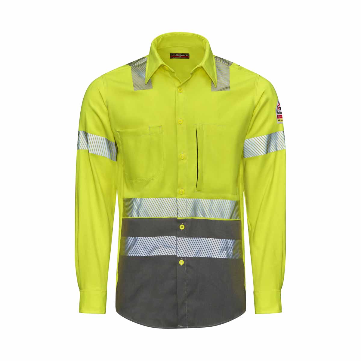 Bulwark Men's Hi-Vis Colorblock Uniform Shirt - Yellow/Grey