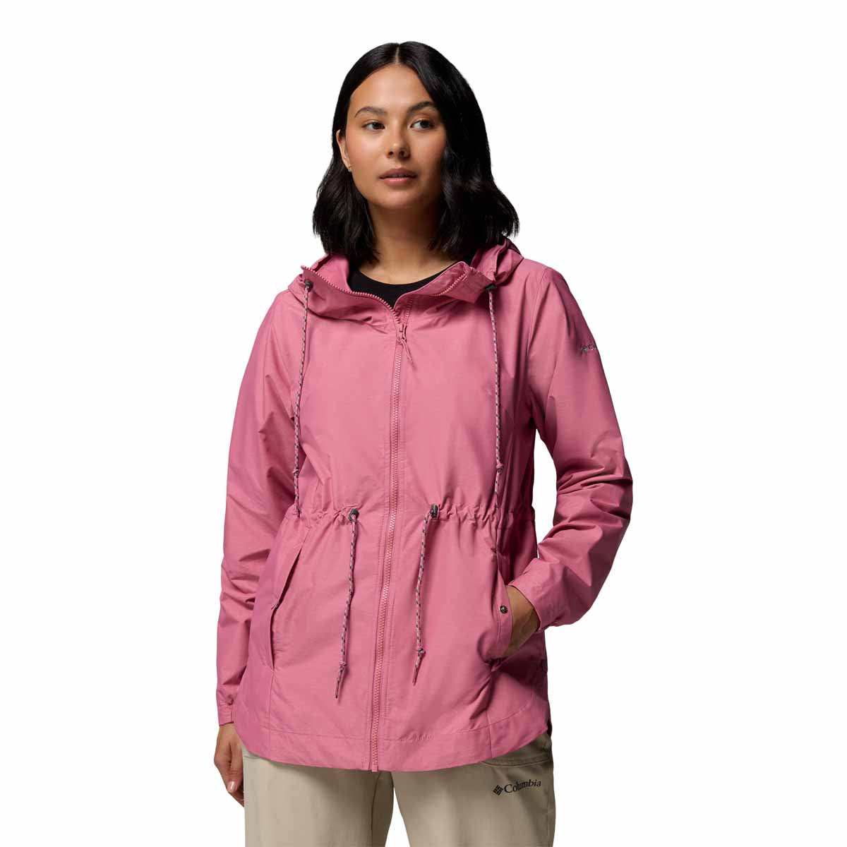 - Drawcord adjustable hood.