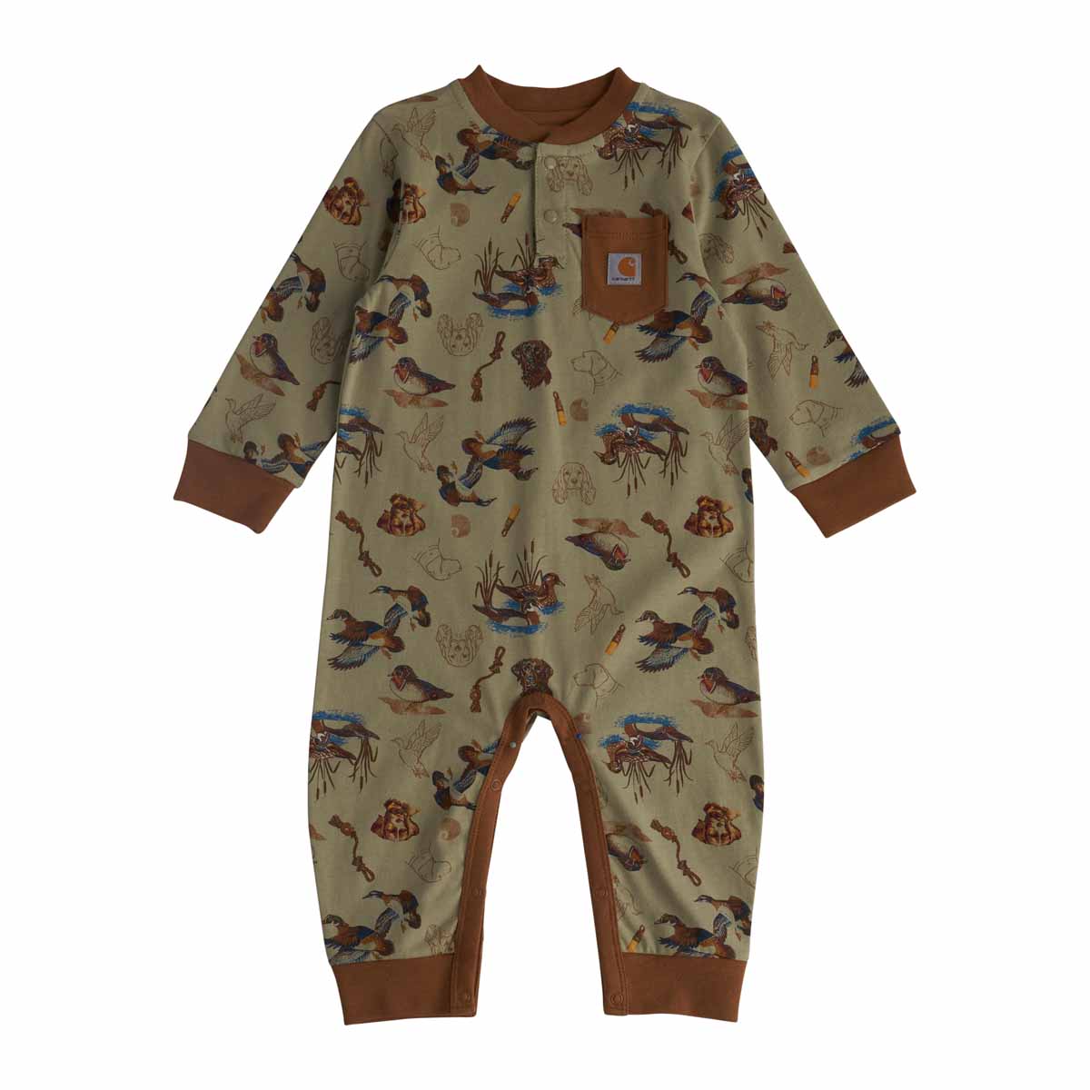 Carhartt Kid's Long-Sleeve Duck Print Coverall - Tea Green G17 / 6 Months is backordered and will ship as soon as it is back in stock.