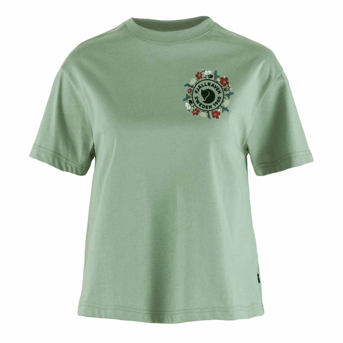 Fjallraven Women's Fjällblomster Logo T-Shirt - Misty Green / L is backordered and will ship as soon as it is back in stock.