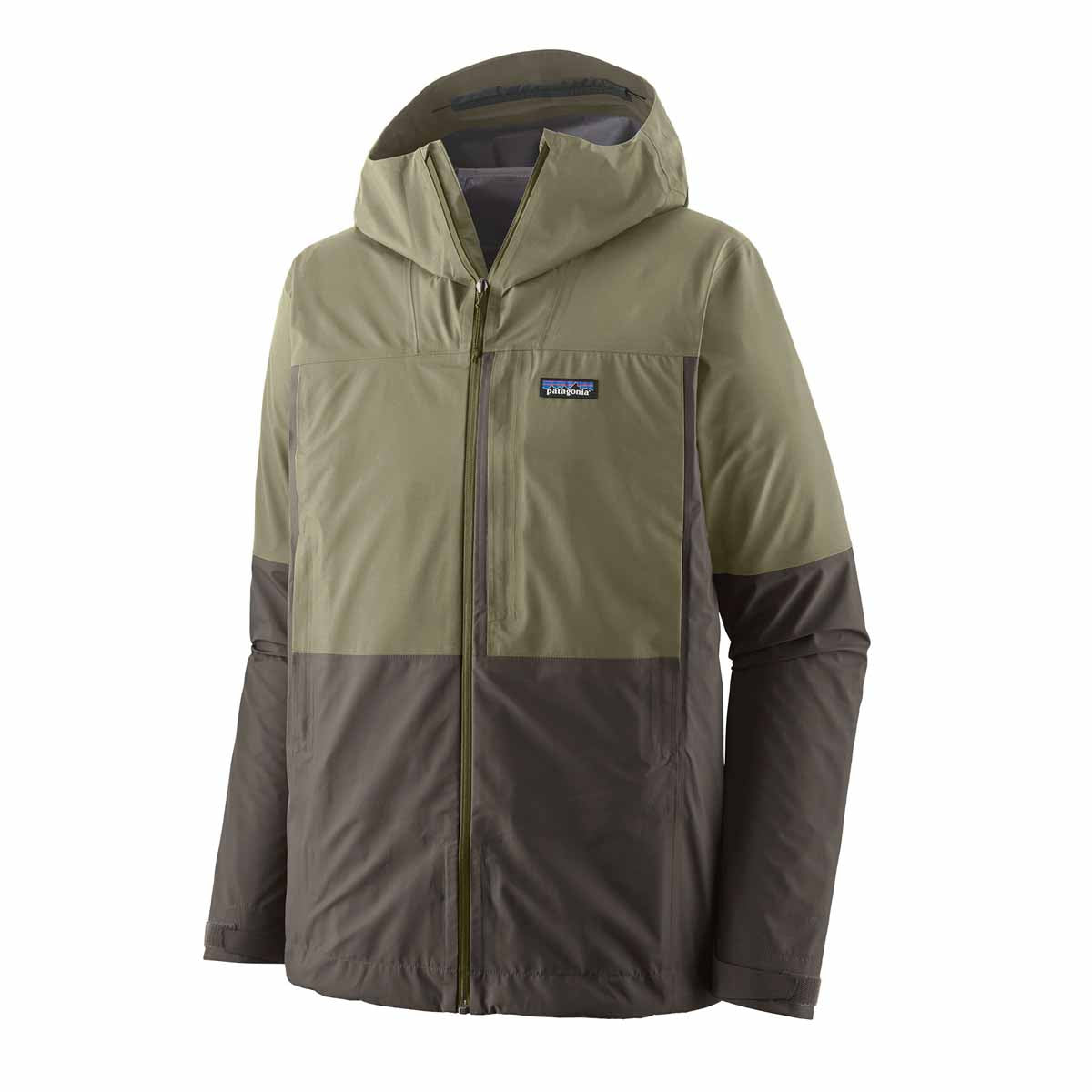 Waterproof, exposed center-front zipper; one left-chest zippered pocket; two watertight, zippered, welted handwarmer pockets sit high and are large enough for a fly box, a map or a notebook