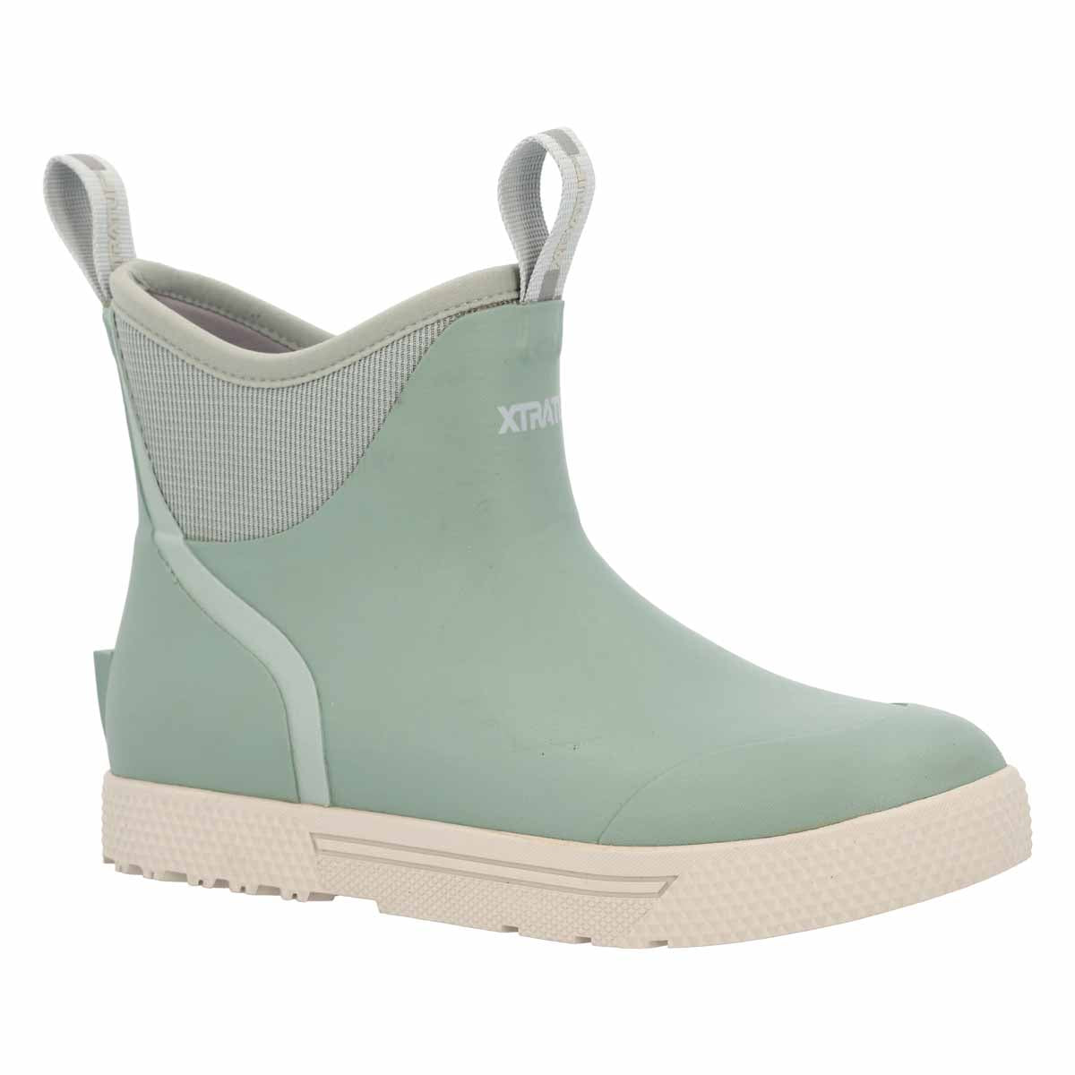 The XTRATUF Wheelhouse is the commercial grade version of the classic Ankle Deck Boot. When you are on your feet 12 hours or more, feet often will swell. This boot has a wider fit to address this issue and keep you comfortable. The 6-inch upper is reinforced in high wear areas, such as the toe and heel, for maximum durability. This boot features a molded EVA insole for all-day comfort, and a slip resistant, non-marking outsole.